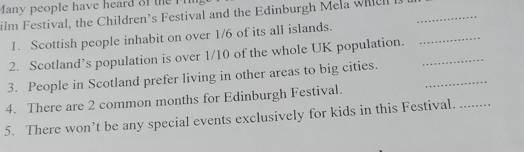 `-` `D`ẫn chứng: The Film Festival, the Children’s Festival and the Edinburgh Mela which is an intercultural festival.
