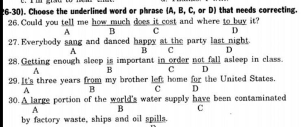 - Nên dùng how much + S + V bình thường 27.B happily vì sau V là adv 28 D (not to fall) 29.B since