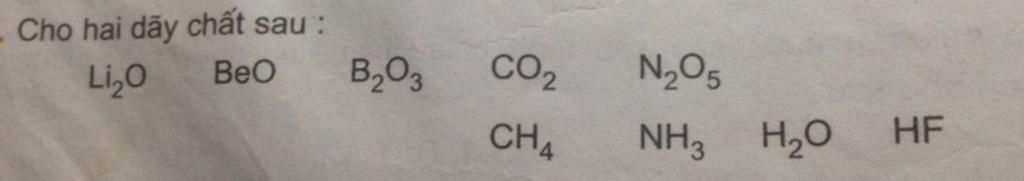 - Dãy 1: Li2O BeO B2O3 CO2 N2O5