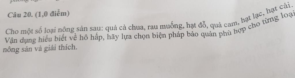 Bảo quản lạnh: quả cà chua, rau muống, hành tây, bắp ngô tươi, quả dưa chuột, rau bắp cải, khoai tây, quả cam.