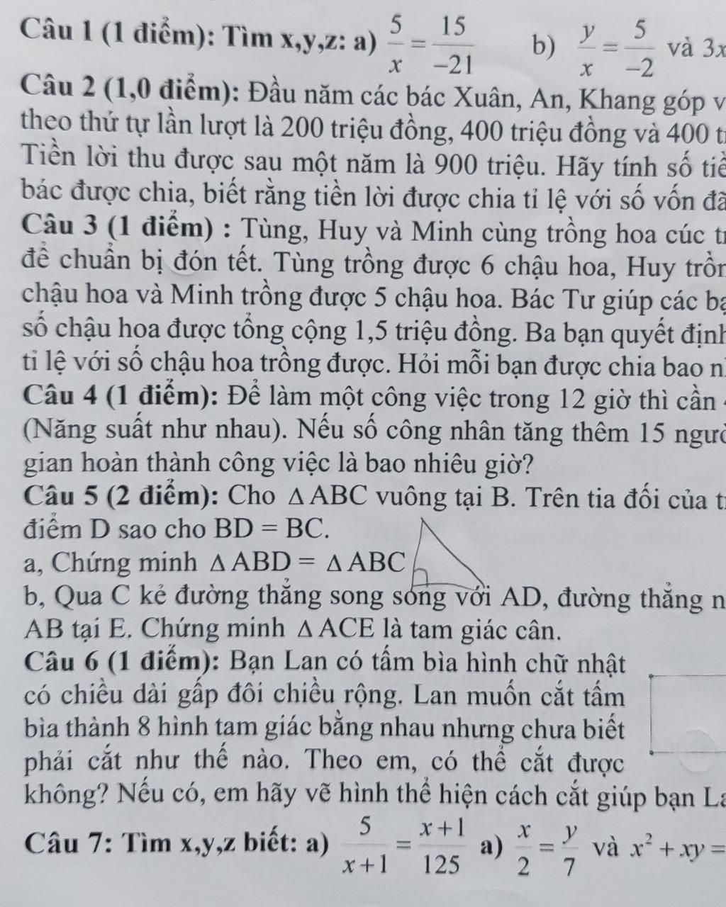 Câu 1 (1 điểm): Tìm x,y,z: a) 5 15