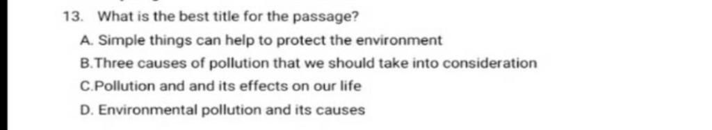 `13` . A Simple things can help to protect the environment (Những điều đơn giản có thể giúp bảo vệ môi trường)