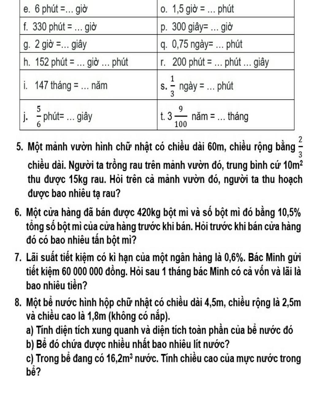 e. 6 phút =... giờ