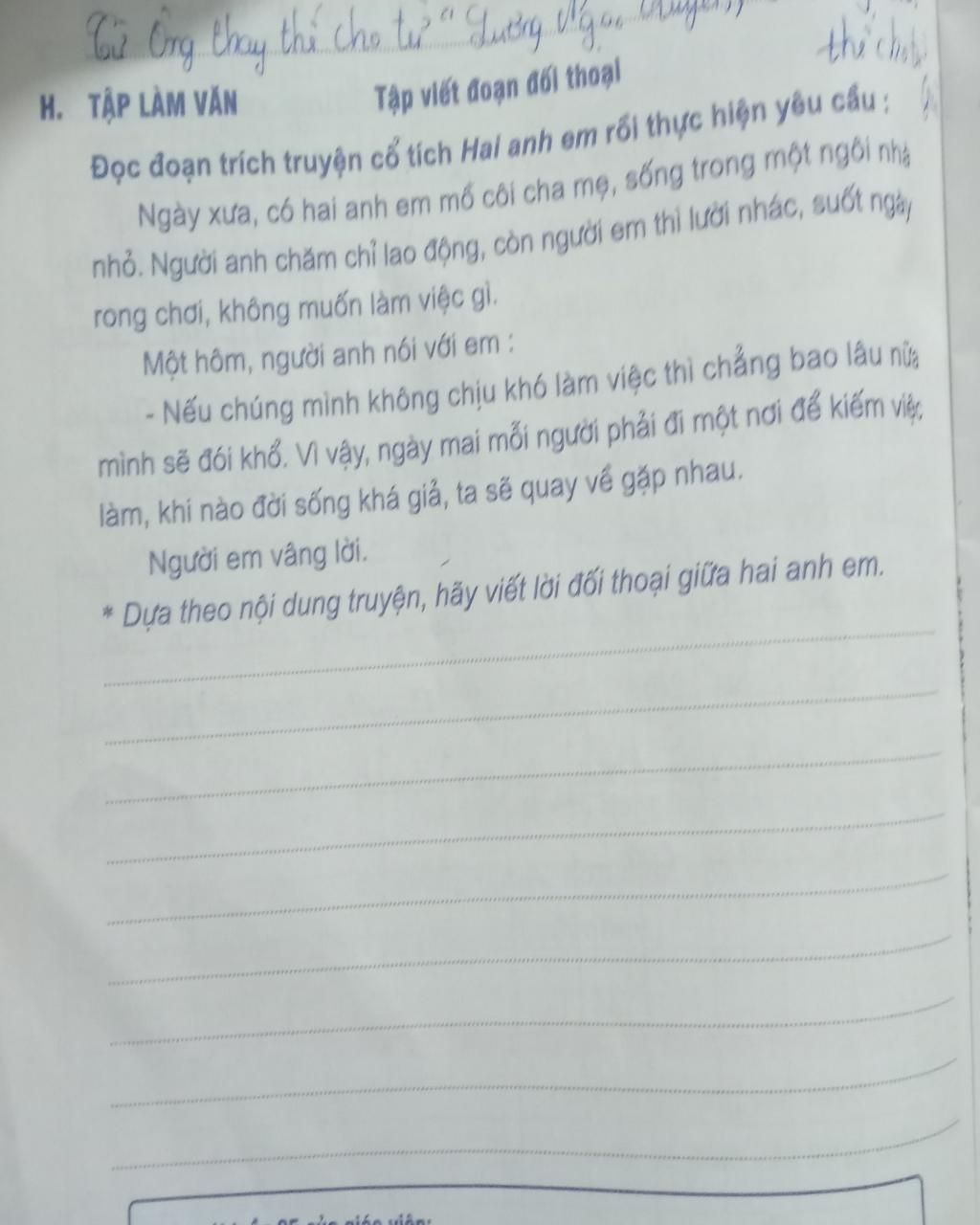 người anh :anh thấy em lười biếng , suốt ngày ham chơi chẳng chịu làm gì cả