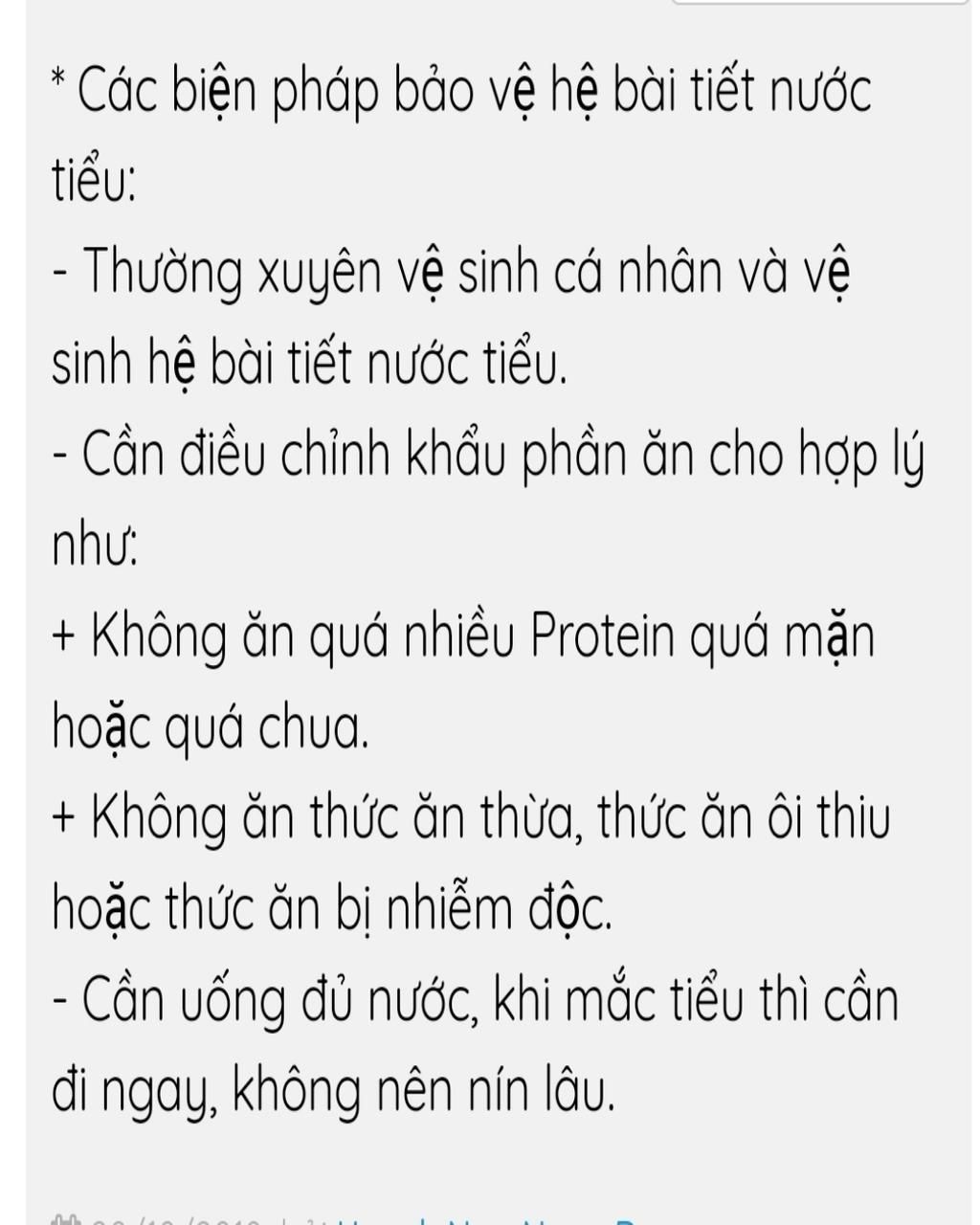 Những cơ sở khoa học để bảo vệ hệ bài tiết nước tiểu là: