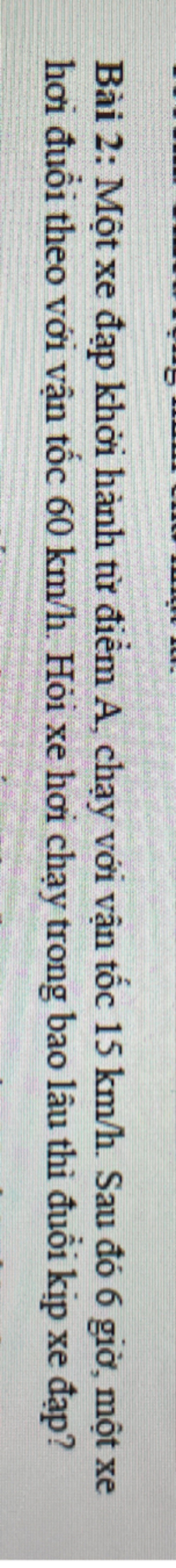 Vậy trong 2 giờ thì xe hơi đuổi kịp xe đạp.