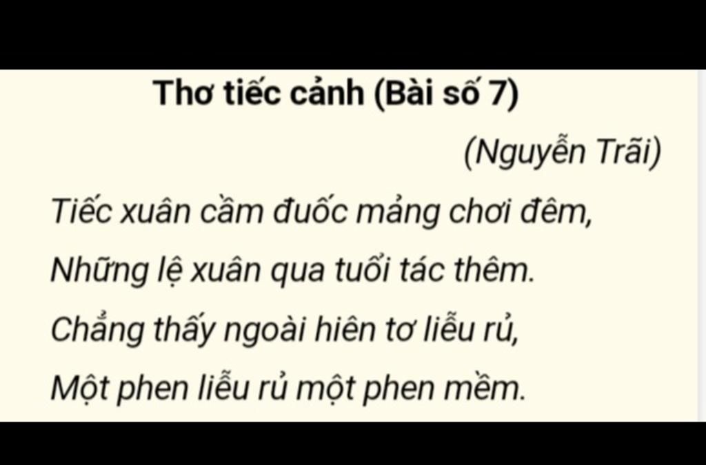 -Nội dung: Cảnh vật trước mắt chỉ có những cánh tơ liễu rủ nhè nhẹ trên nền trời đêm tĩnh lặng.
