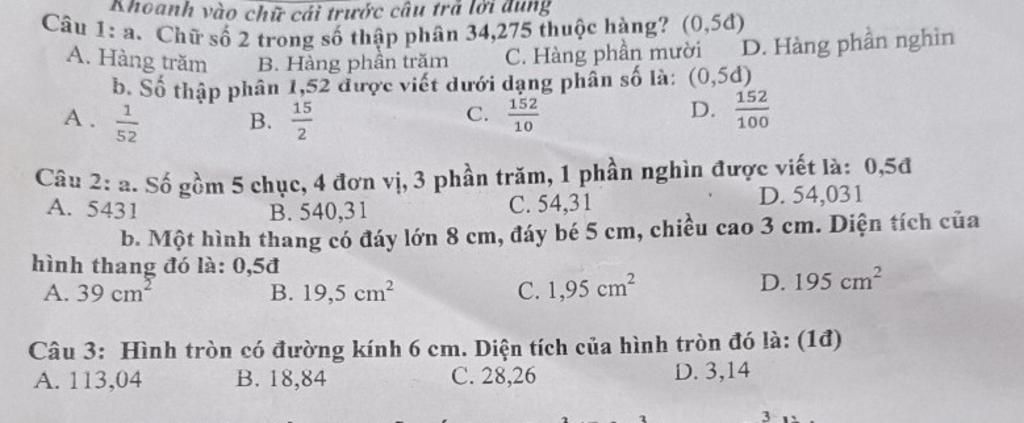 Số gồm `5` chục, `4` đơn vị, `3` phần trăm, `1` phần nghìn được viết là `54,031`