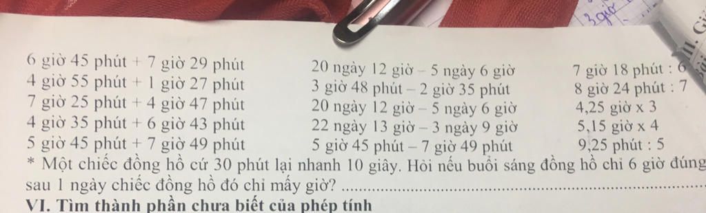 sửa đề : 5 giờ 45 phút + 7 giờ 49 phút = 12 giờ 94 phút = 13 giờ 34 phút