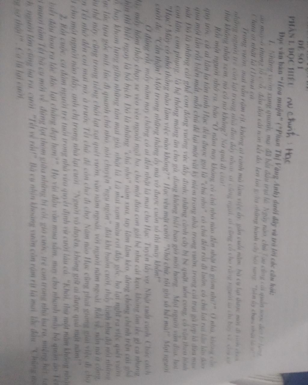 Đẹp văn bản "Hoa muộn" ("Phun Thị Vàng Anh) dưới đây và trò lời các câu hoặc