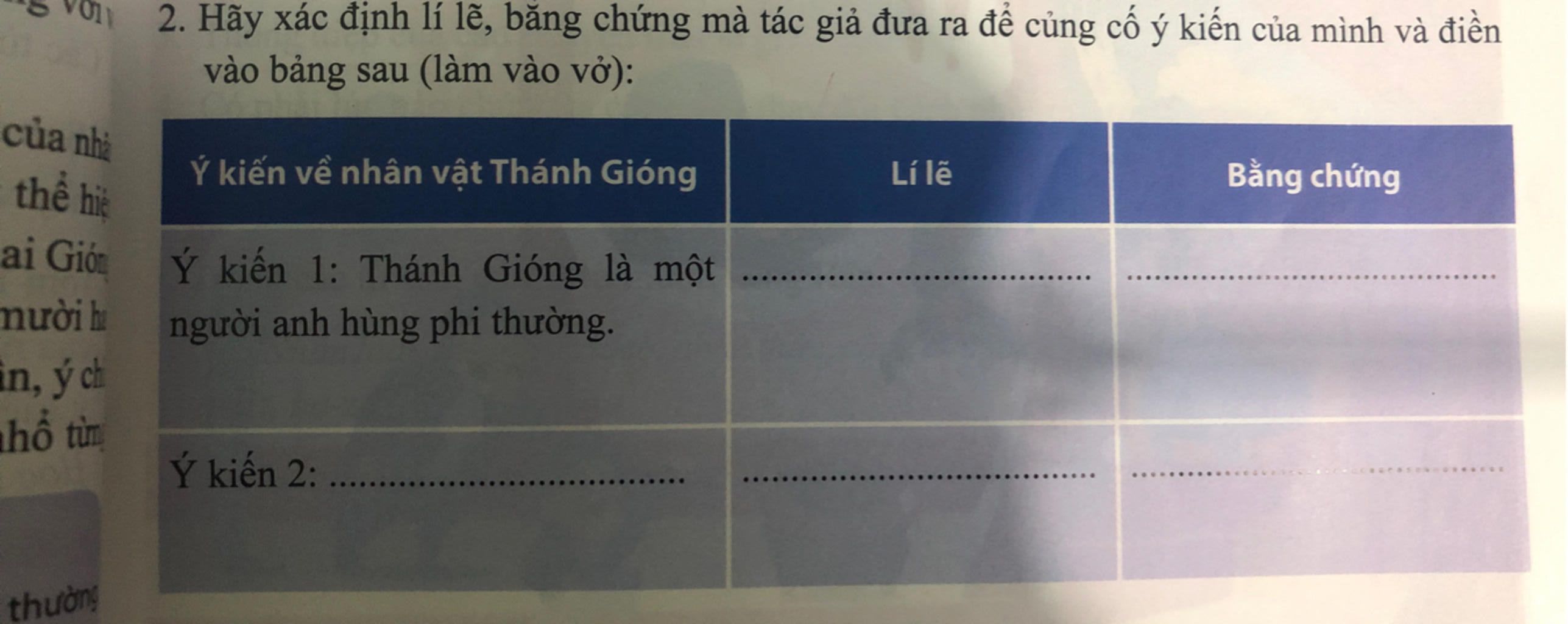 Ý kiến thứ 2: Nhân vật Thánh Gióng thể hiện sức mạnh của nhân dân trong công cuộc giữ nước.