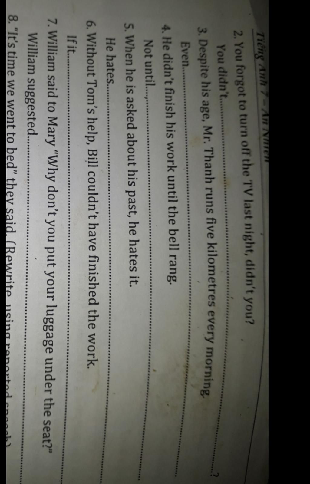7 William suggested Mary to put her luggage under the seat ( câu gợi ý )
