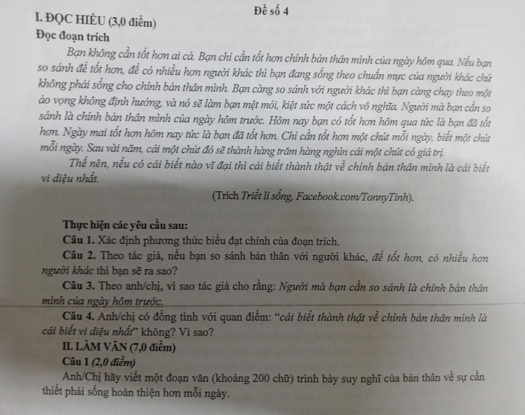 4/ Em đồng tình với quan điểm “cái biết thành thật về chính bản thân mình là cái biết vi diệu nhất". Bởi bạn sẽ tự tin khi bạn hiểu rõ bản thân mình. Khi bạn hiểu chính mình, chấp nhận sự không hoàn hảo của bản thân thì bạn sẽ hiểu rõ những lời nhận xét, góp ý của đối phương, từ đó mong muốn được hoàn thiện bản thân.
