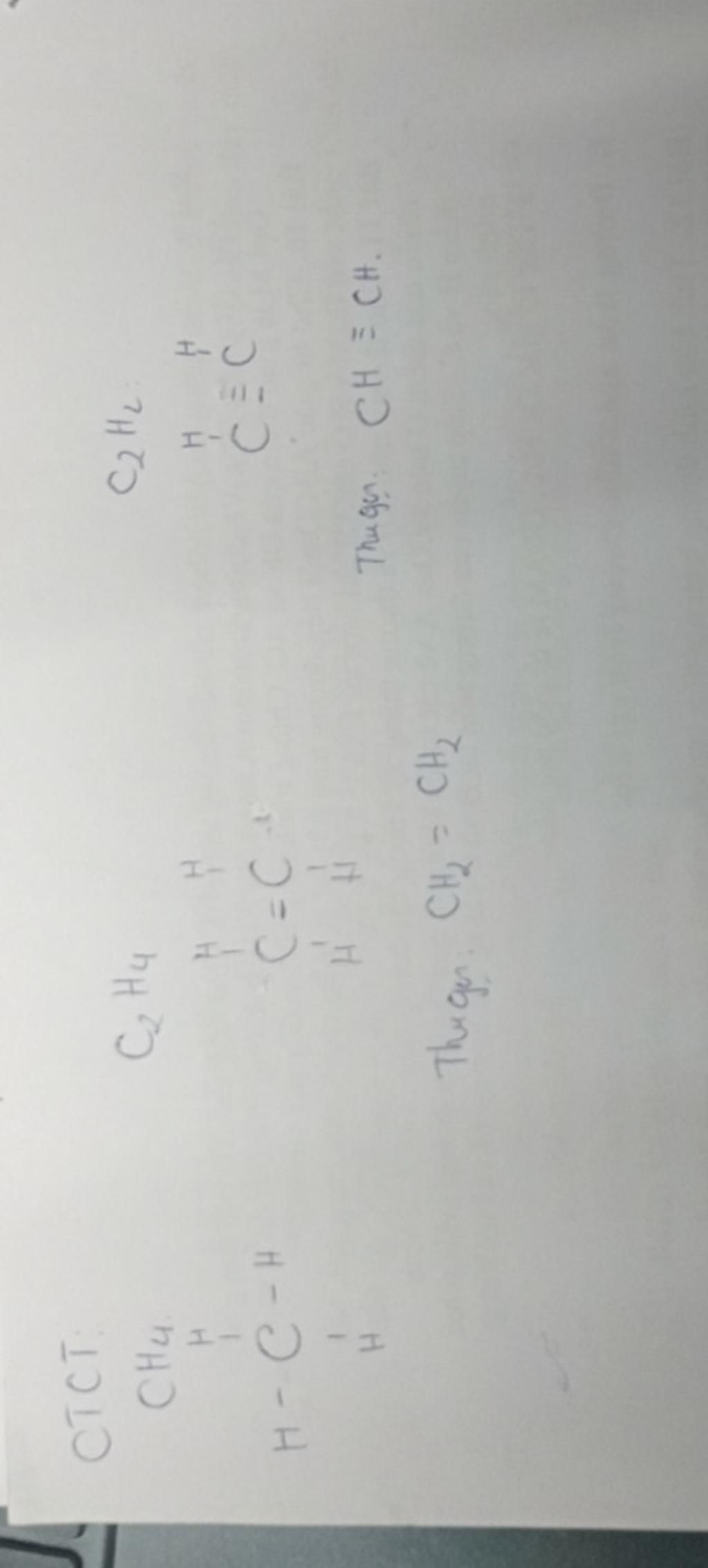 Công thức cấu tạo đầy đủ và thu gọn của CH4,C2H4,C2H2: