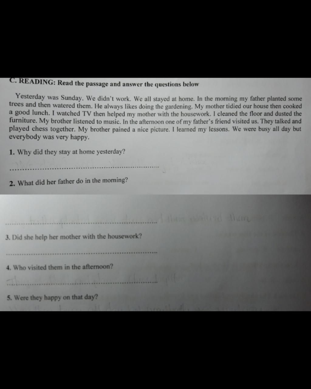 `4.` One of her father's friend visited them in the afternoon.