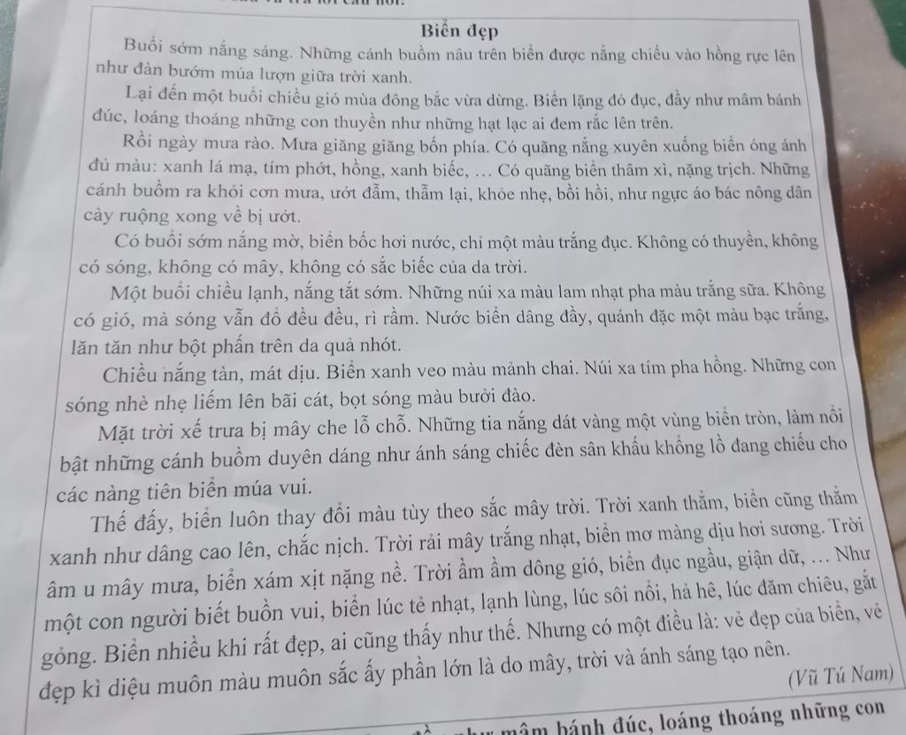 `-` Trong bài văn trên, em thấy tác giả liên tưởng biển với sắc mây trời.