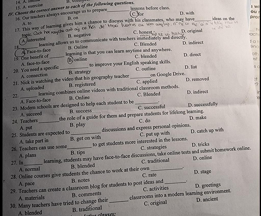 17. D original ~ nguyên bản, ban đầu