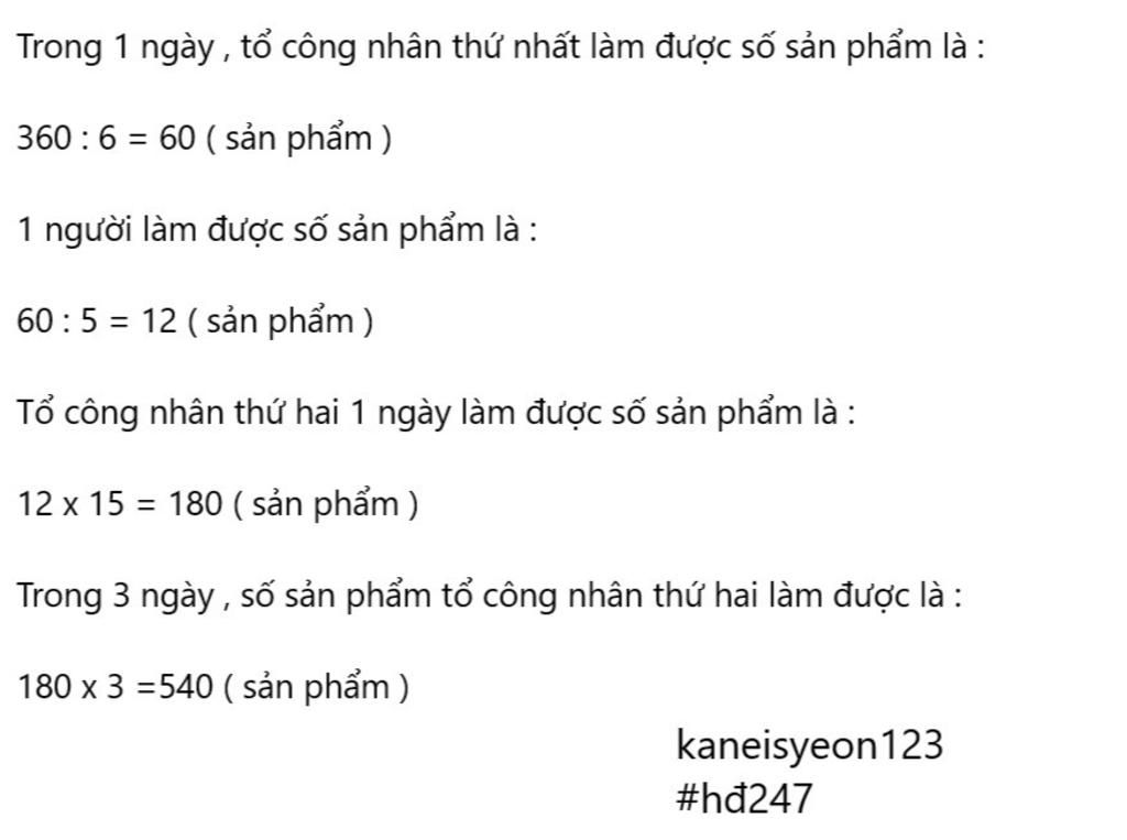 mỗi công nhân là được số sản phẩm là