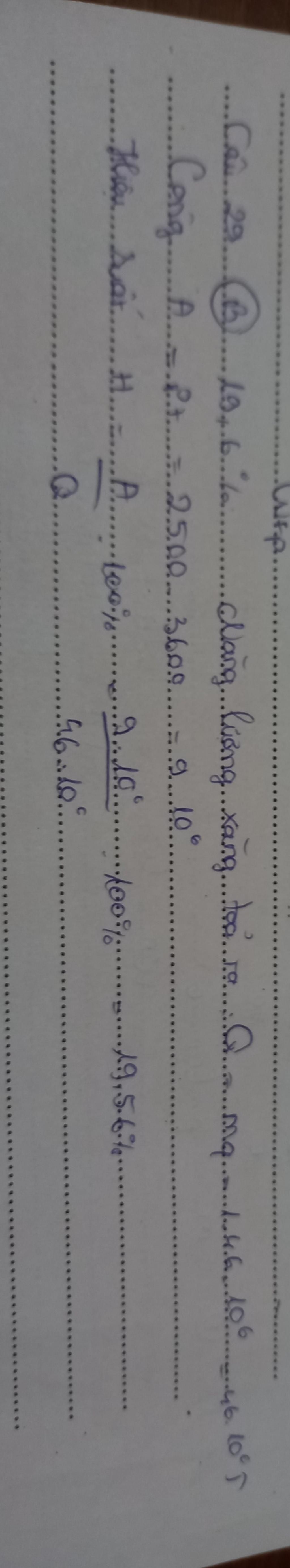 \[H = \frac{A}{Q}.100\% = \frac{{{{9.10}^6}}}{{{{46.10}^6}}}.100\% = 19,56\% \]