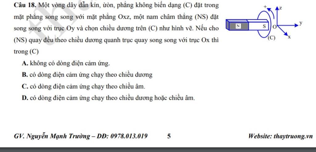 Câu 18. Một vòng dây dẫn kín, ừòn, phẳng không biến dạng (C) đặt trong
