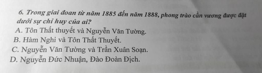6-trong giai đoạn từ năm 1985 đến năm 1988 phong trào Cần Vương được đặt dưới sự chỉ huy của ai