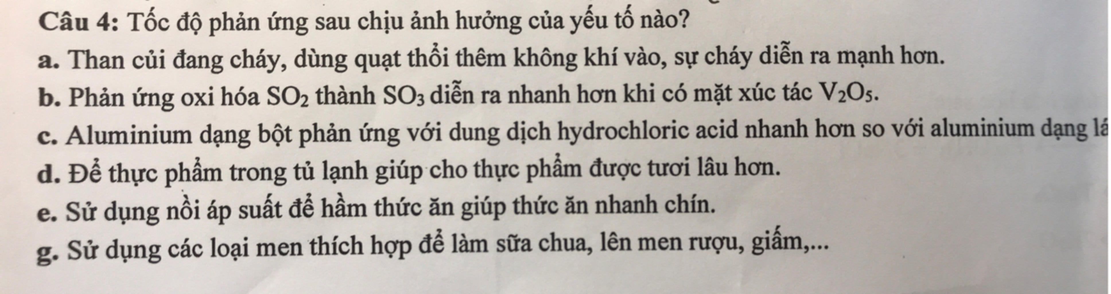 c, Tốc độ phản ứng của nhôm với acid tăng lên do diện tích tiếp xúc của aluminium dạng bột với dung dịch acid hydrochloric lớn hơn so với aluminium lá.