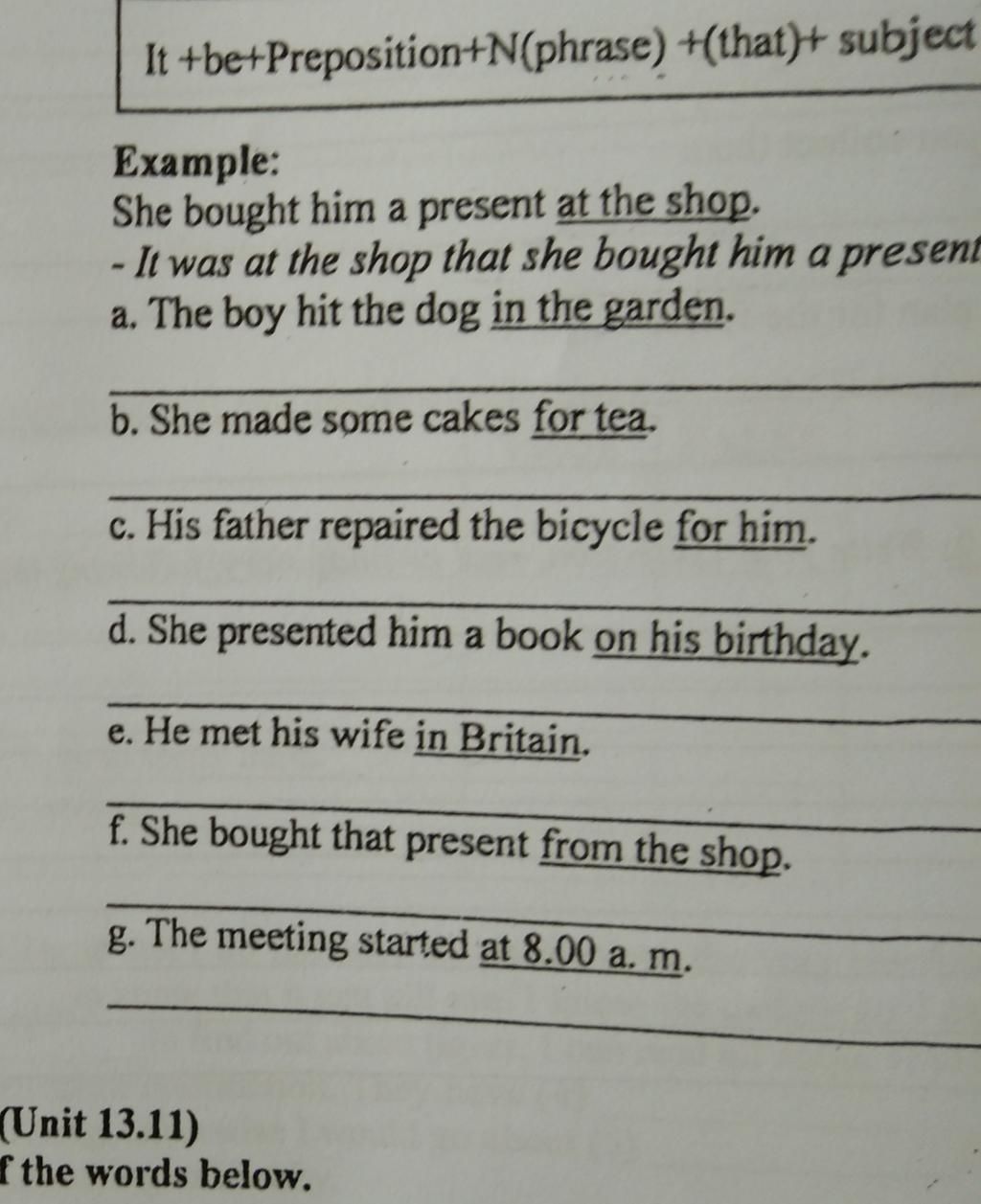 d. She presented him a book ...