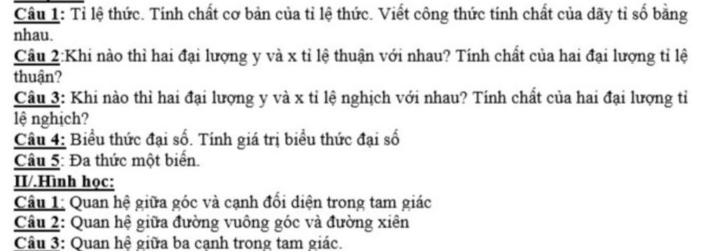 Câu 1 Trong một tam giác, góc đối diện với cạnh lớn hơn là góc lớn hơn. Trong một tam giác, cạnh đối diện với góc lớn hơn là cạnh lớn hơn.
