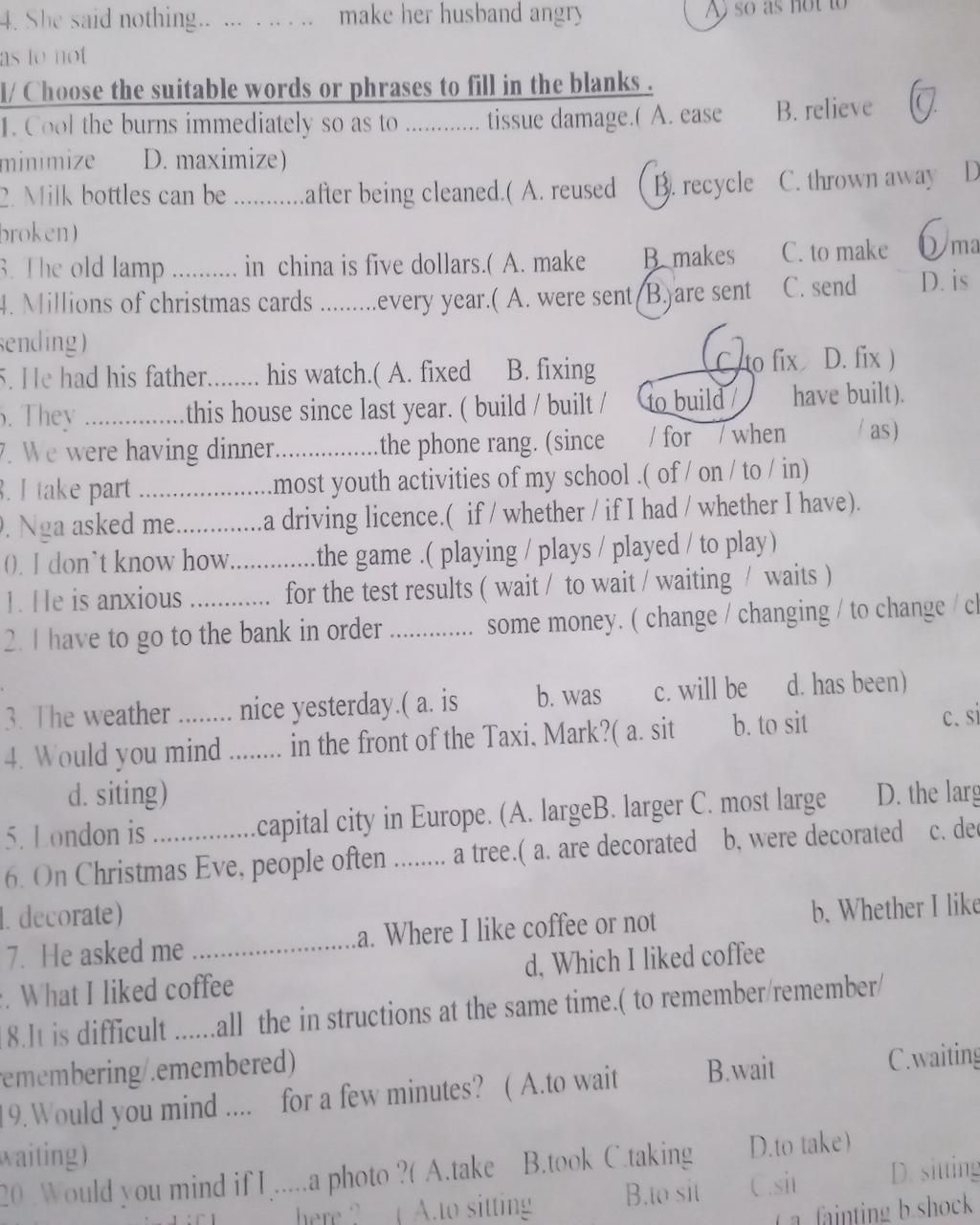 1/ Choose the suitable words or phrases to fill in the blanks.