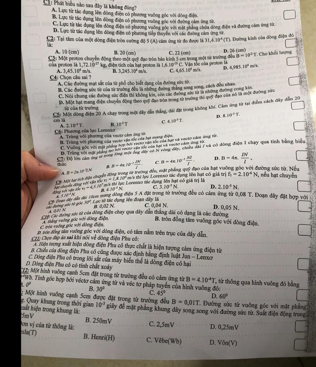 Lực từ tác dụng lên dòng điện có phương vuông góc với phẳng chứa dòng điện và đường cảm ứng ...