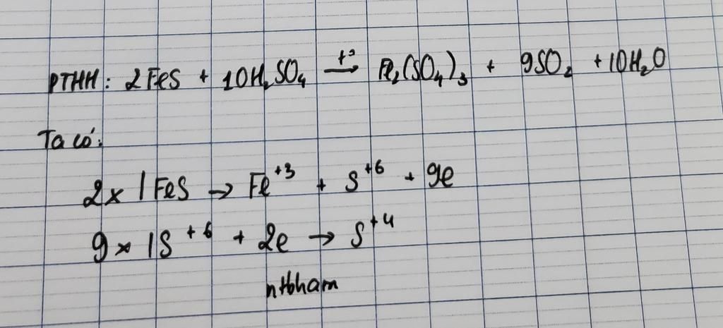 2FeS + 10{H_2}S{O_4} \to F{e_2}{(S{O_4})_3} + 9S{O_2} + 10{H_2}O\\