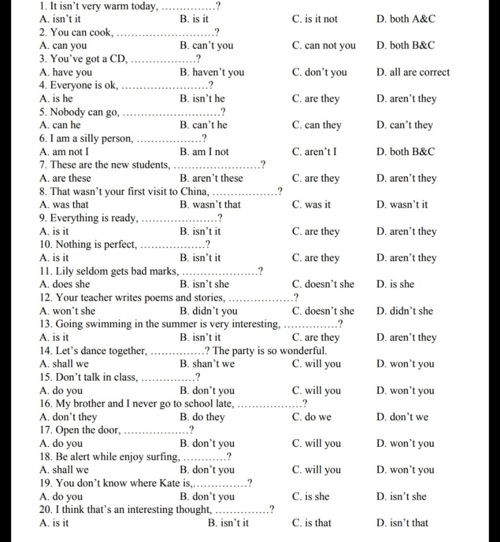 3A 4D 5B 6D 7D 8A 9D 10A 11B 12C 12C 13D 14A 15B 16B 17A 18D 19A 20D bạn nhé hơi khó