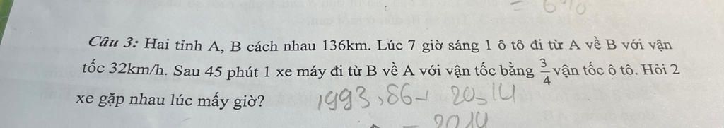 Thời gian 2 xe đi đến khi gặp nhau kể từ lúc xe máy đi: