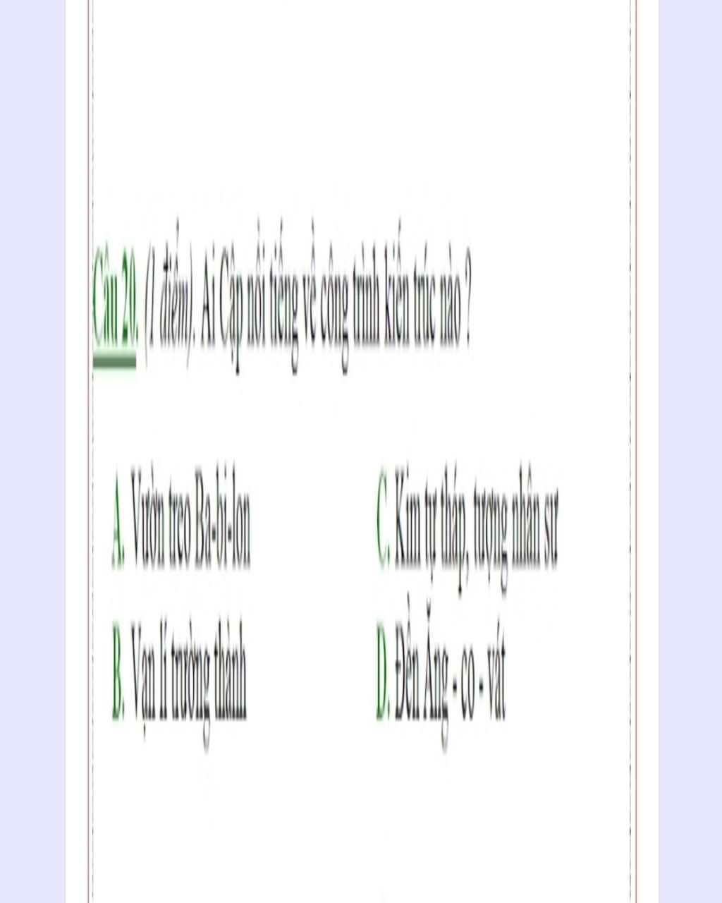 Câu `20`: Công trình - kiến trúc nổi tiếng ở Ai Cập là : Kim tự tháp, Tượng Nhân sư