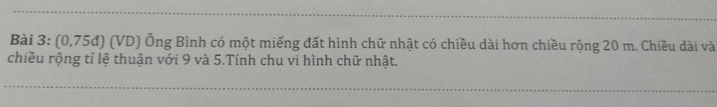 Do chiều dài vài chiều rộng tỉ lệ thuận với 9 và 5