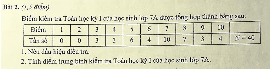 Điểm kiểm tra Toán học kỳ I của học sinh lớp 7A được tổng hợp thành bảng sau: