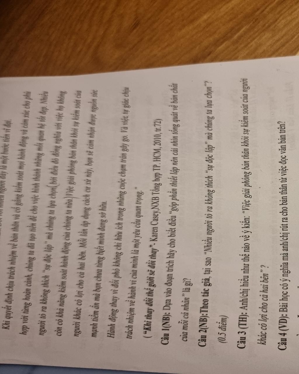 người tỏ ra không thích "sự độc lập” mà chúng ta lựa chọn bởi đ ...