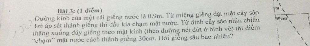 Đường kính của một cái giếng nước là 0.9m. Từ miệng giếng dặt một cây sào
