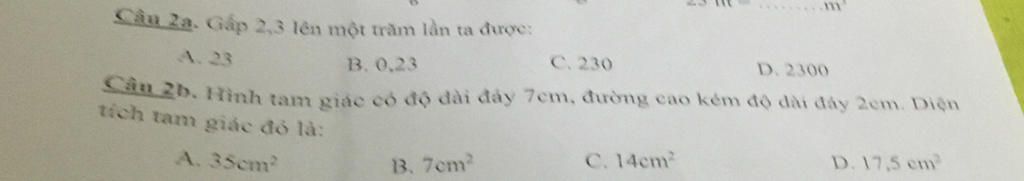 Câu `2a`. Gấp `2,3` lên một trăm lần ta được:
