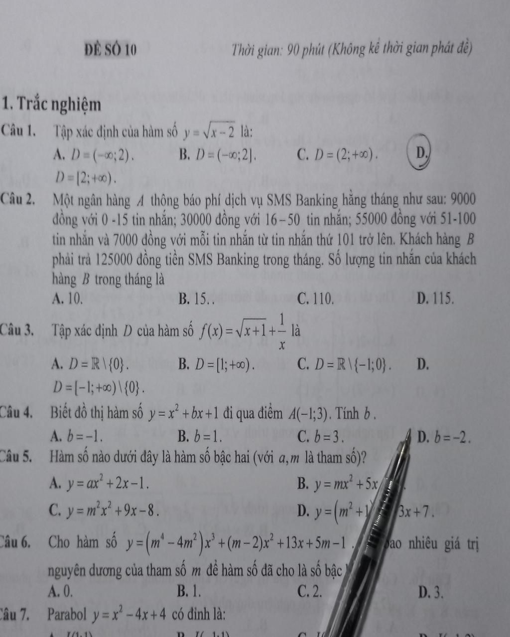 Gọi `f(x)` là hàm số biểu thị số tiền khách hàng `B` đó phải trả cho dịch vụ SMS Banking trong một tháng