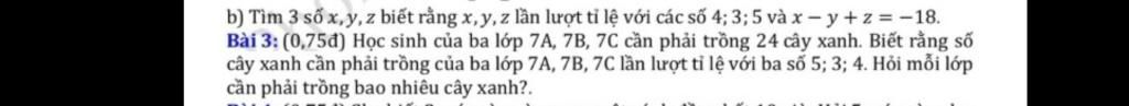 Vậy lớp `7A` cần phải trồng được `10` cây `\bb ;` lớp `7B` cần phải trồng được `6` cây `\bb ;` lớp `7C` cần phải trồng được `8` cây