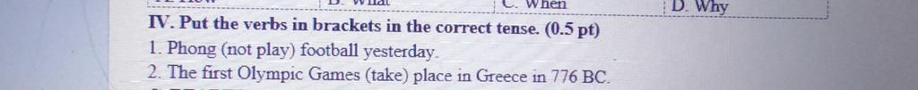 `-` DHNB: In `776` BC `->` thời gian trong quá khứ `->` chia QKĐ