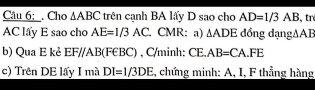 Câu 6: . Cho AABC trên cạnh BA lấy D sao cho AD=1/3 AB, trẻ