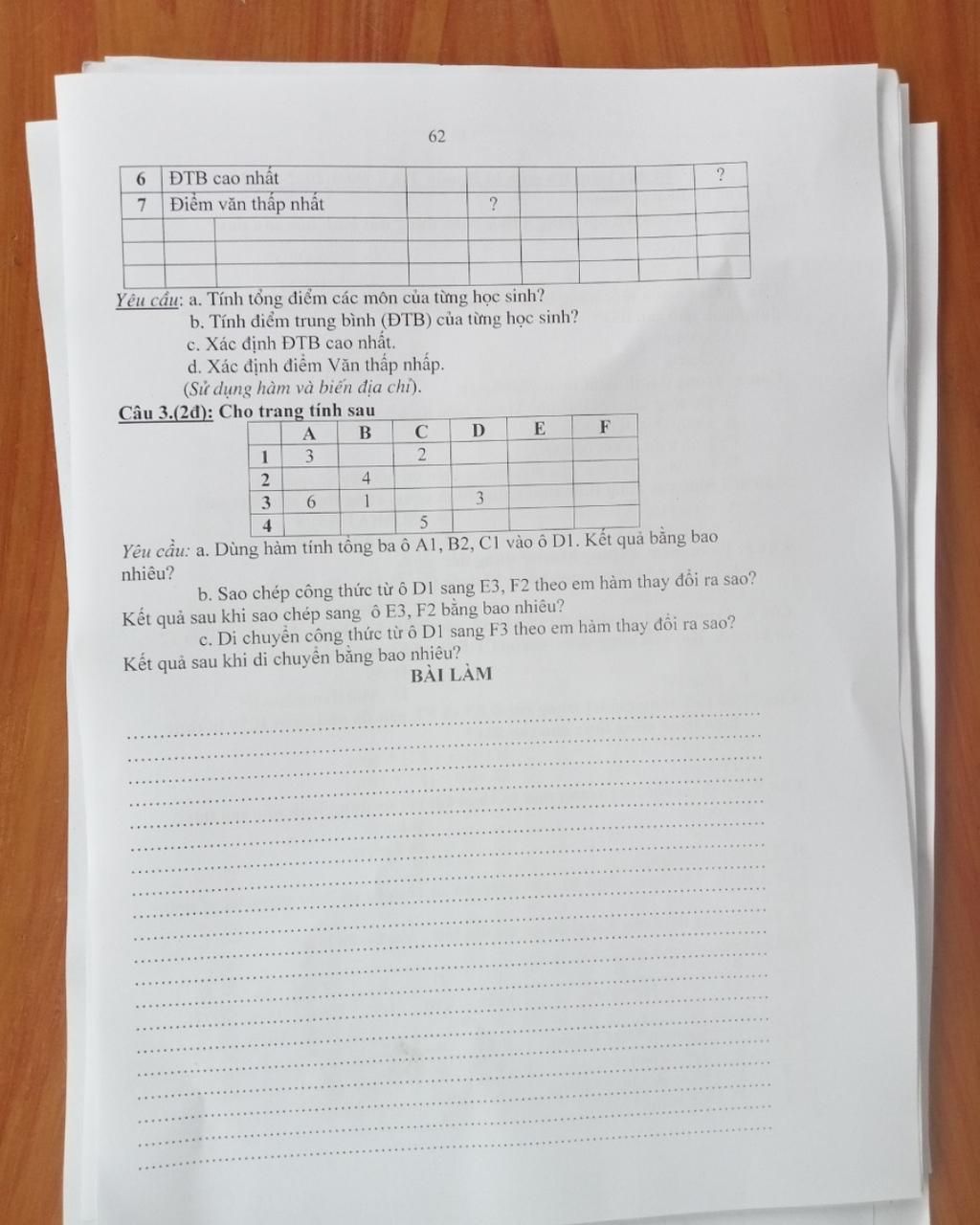 Yêu cầu: a. Tính tổng điểm các môn của từng học sinh?