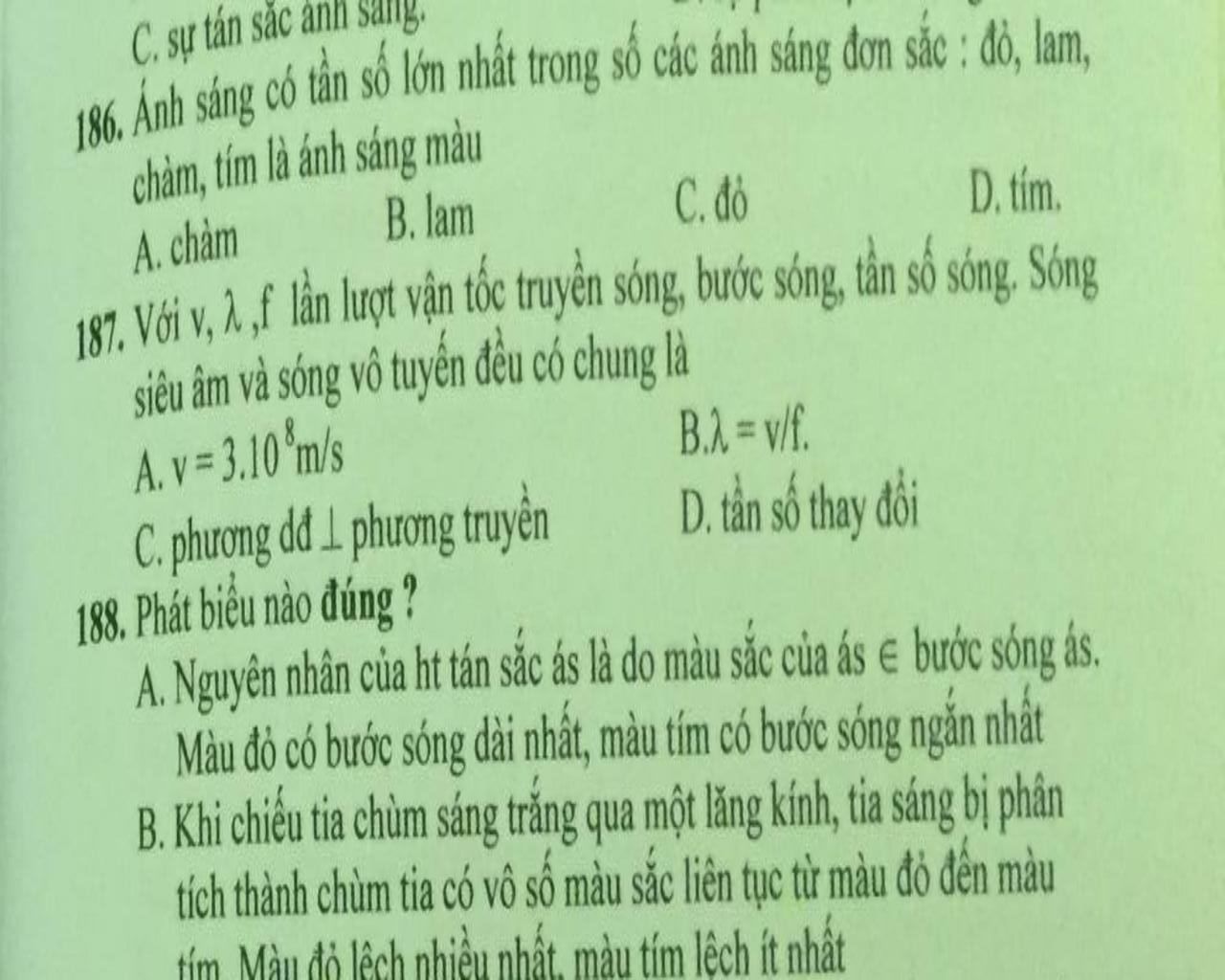 187 A vì sóng siêu âm và sóng vô tuyến đều có chung vận tốc ánh sáng mà vận tốc ánh sáng là 3×10mũ 8