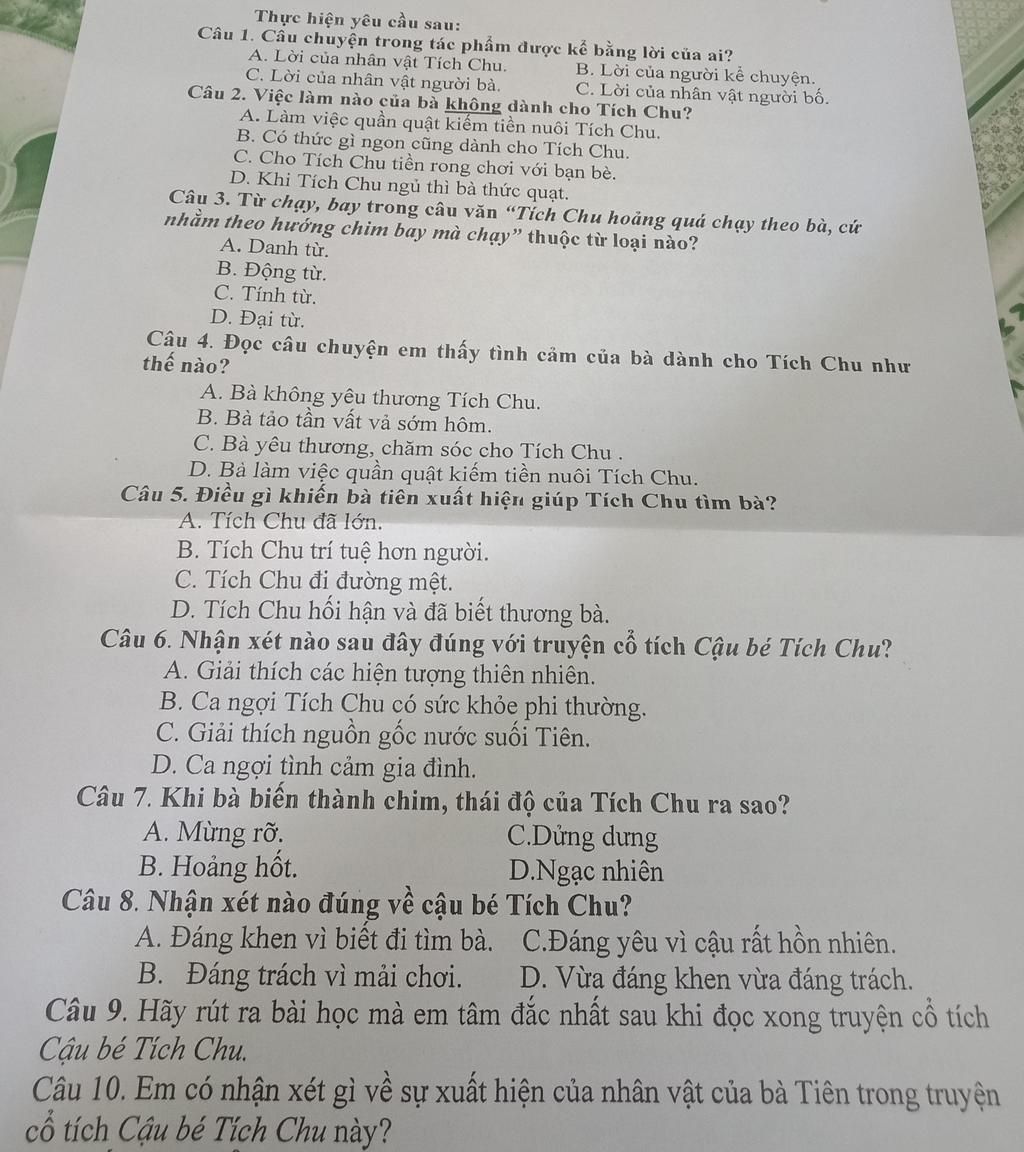 Ngày xưa, có một bạn tên là Tích Chu. Bố mẹ Tích Chu mất sớm, Tích Chu ở với bà.