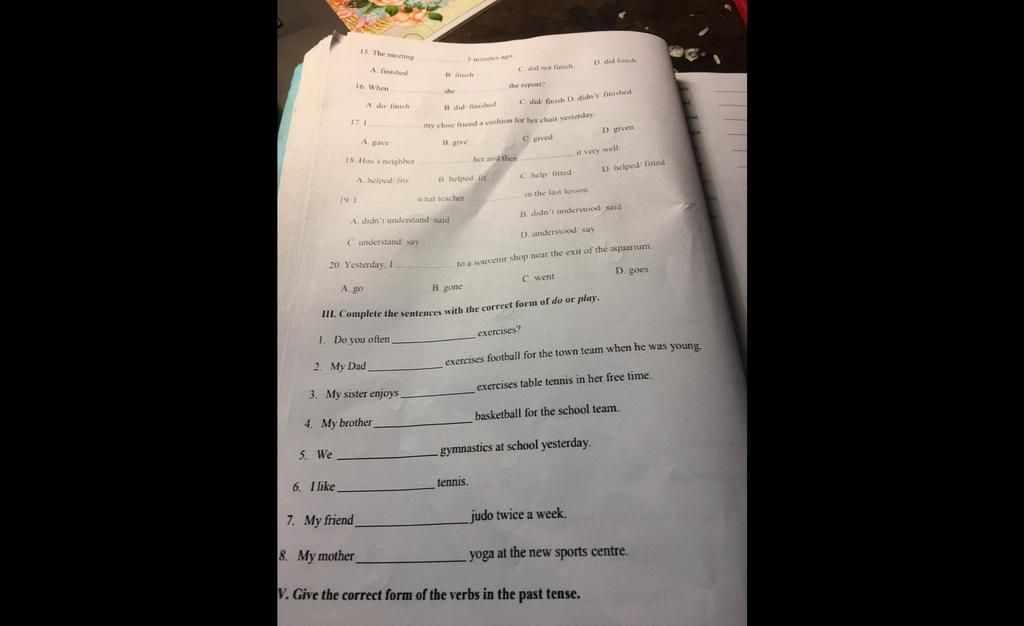 5. Do gymnastic: tập gym; yesterday=> thì QK