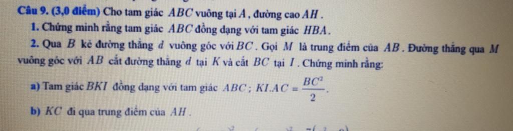 Câu 9. (3,0 điểm) Cho tam giác ABC vuông tại A, đường cao AH .