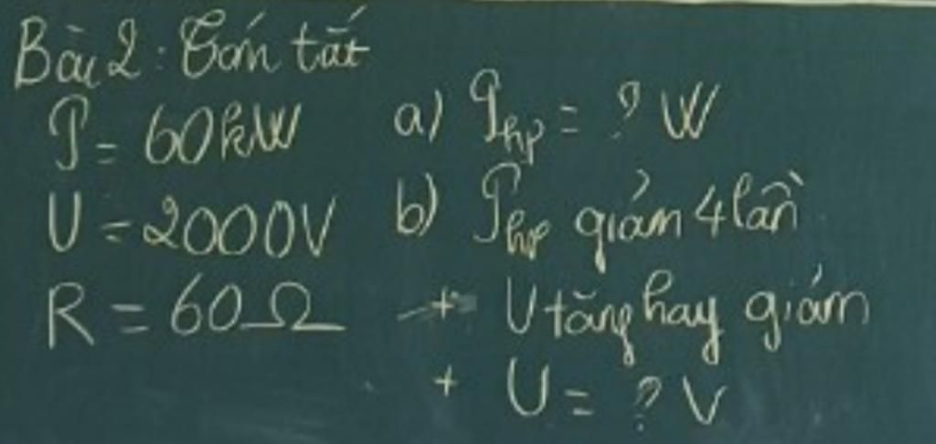 Do đó, khi \({P_{hp}}\) giảm 4 lần thì \(U\) tăng 2 lần.