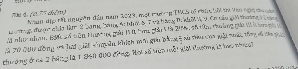 +) Hai giải khuyến khích mỗi giải bằng `1/3` số tiền của giải `I` :